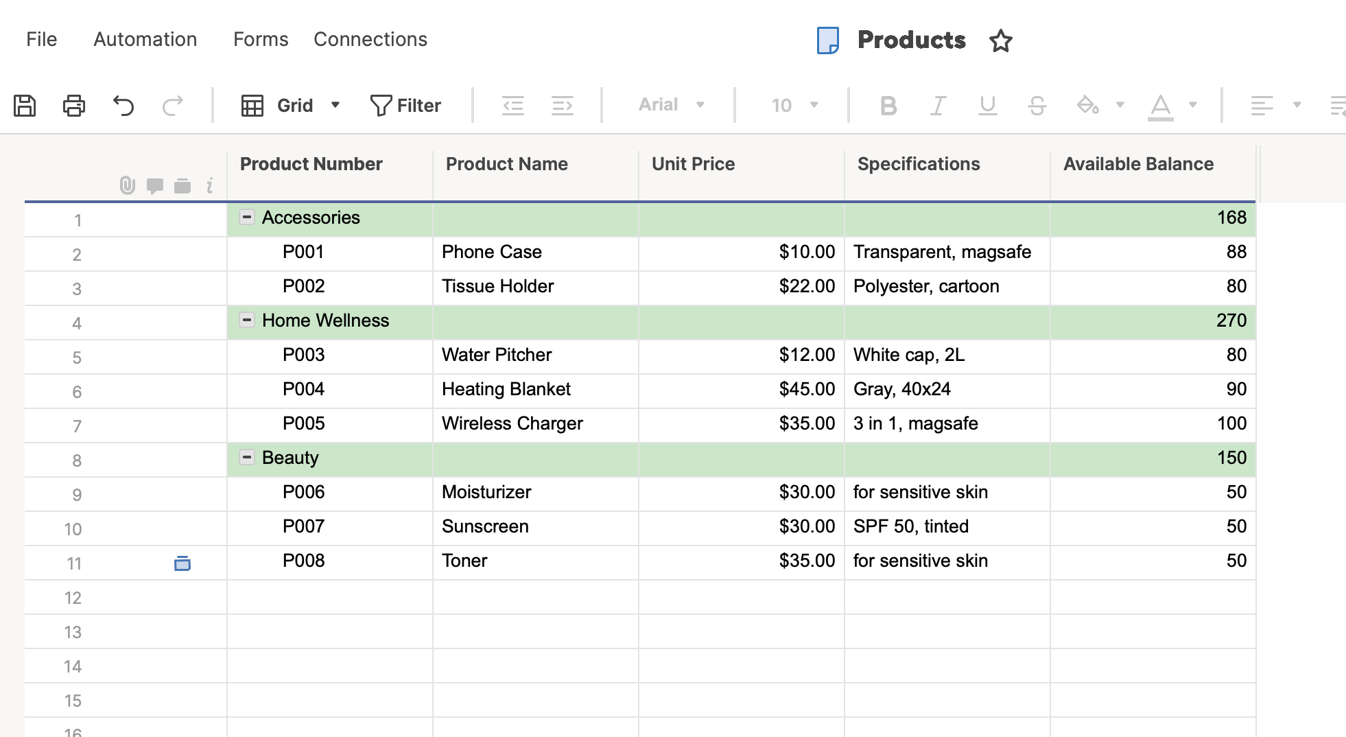 Similar to Microsoft Excel and spreadsheet tools, SmartSheet is flat in structure and does not support subtables or line items. This poses challenges for companies who wish to store data for sales orders, purchase orders, and similar line items that work better with subtables. This also means that SmartSheet is unable to reference all records related to a particular piece of data. From this feature alone, we can see why SmartSheet positions themselves as a project management and task tracking solution, since it is simply not built to be a relational database.
